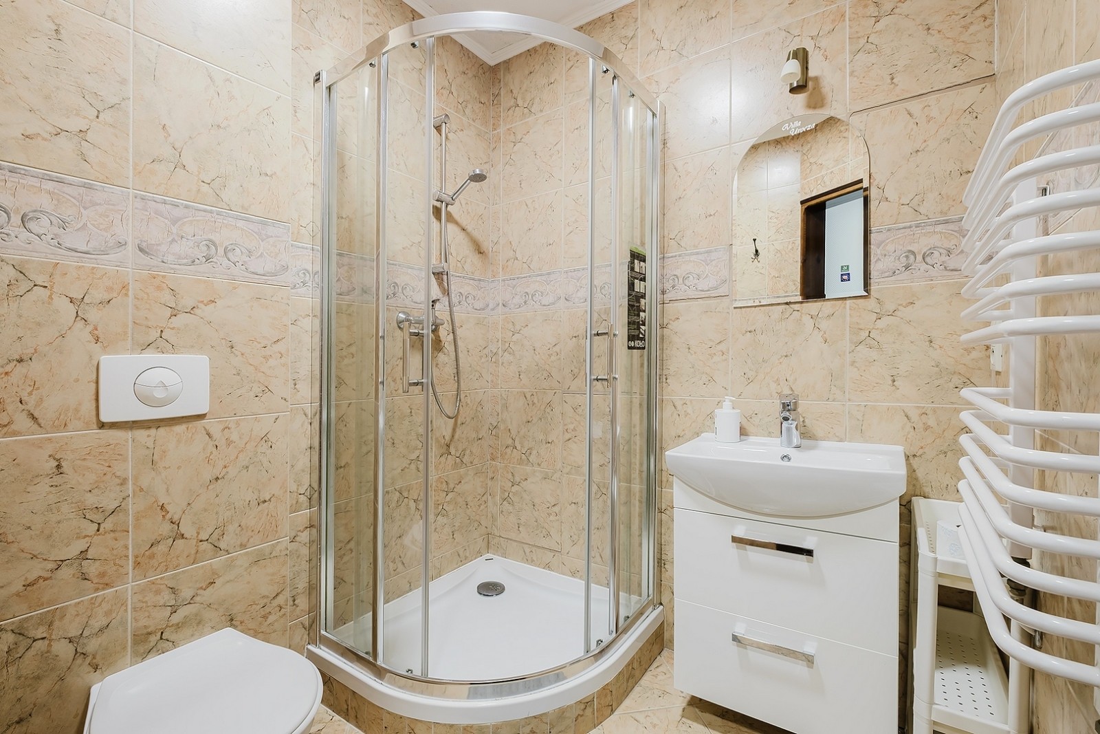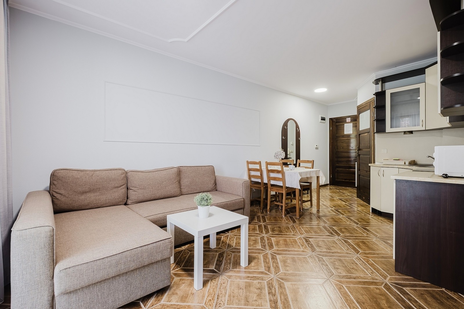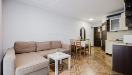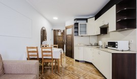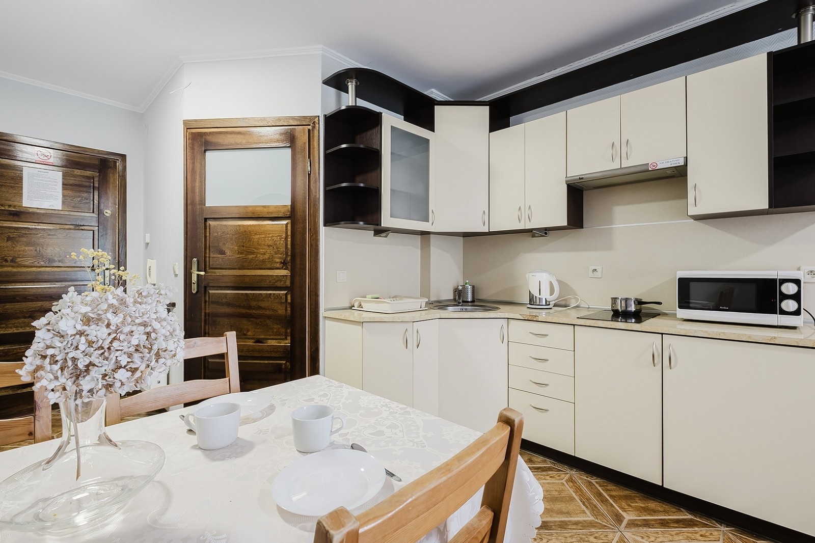 Apartament dwupokojowy Eryk 3 zlokalizowany w obiekcie U na parterze. W skład apartamentu wchodzi łazienka z kabiną prysznicową, dużym aneksem kuchennym wyposażonym w niezbędne naczynia kuchenne, lodówko - zamrażarkę, płytą grzewczą - elektryczną ,mikrofalówka, duży stół oraz kanapo - sofę, mały pokój tapczanik x2, odbiornik TV 32" LED z cyfrową naziemną telewizją, balkon z stoliczkiem i krzesełkami oraz wyjściem na teren zielony. Do apartamentu przydzielone jest 1 bezpłatne miejsce parkingowe. Wi-Fi