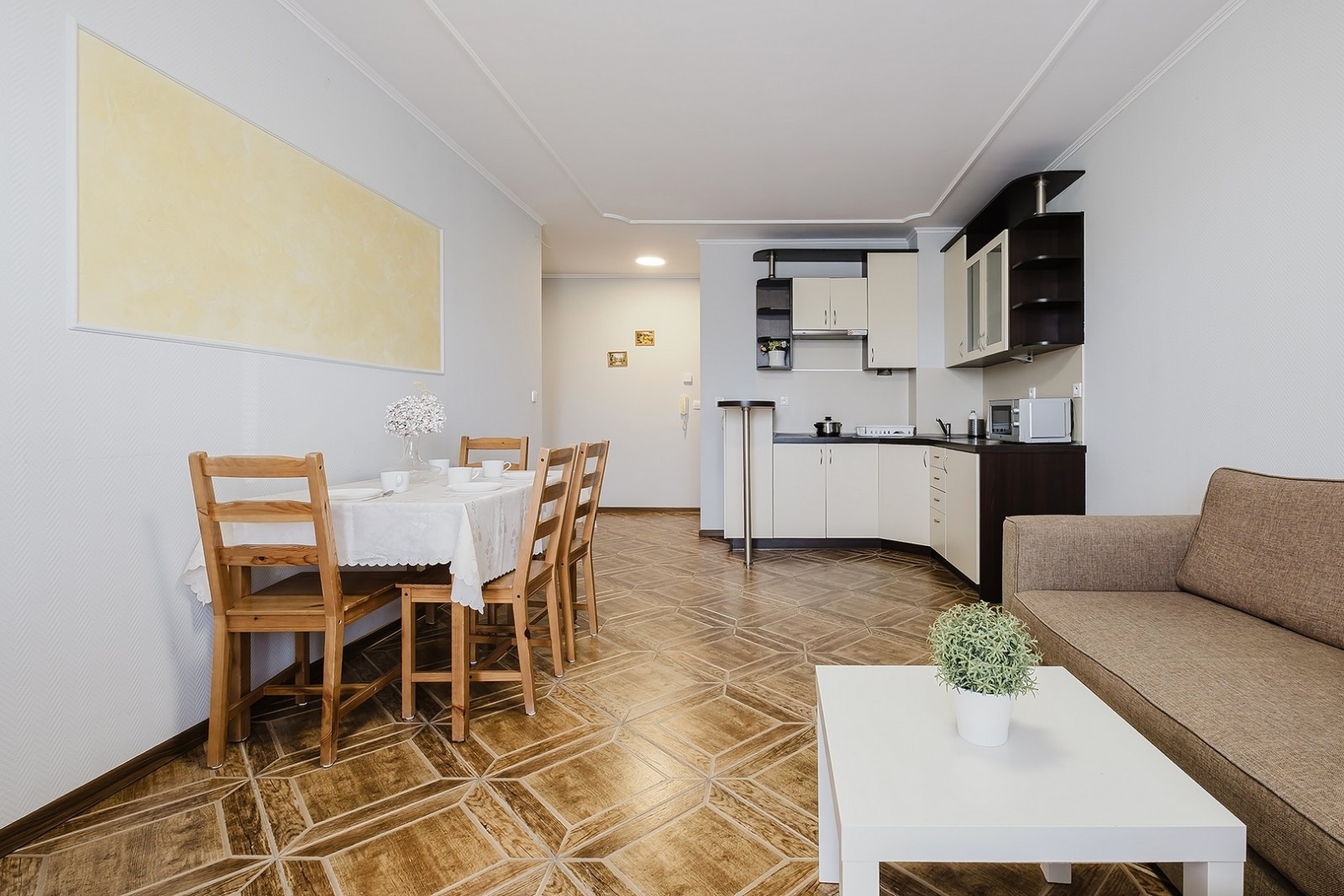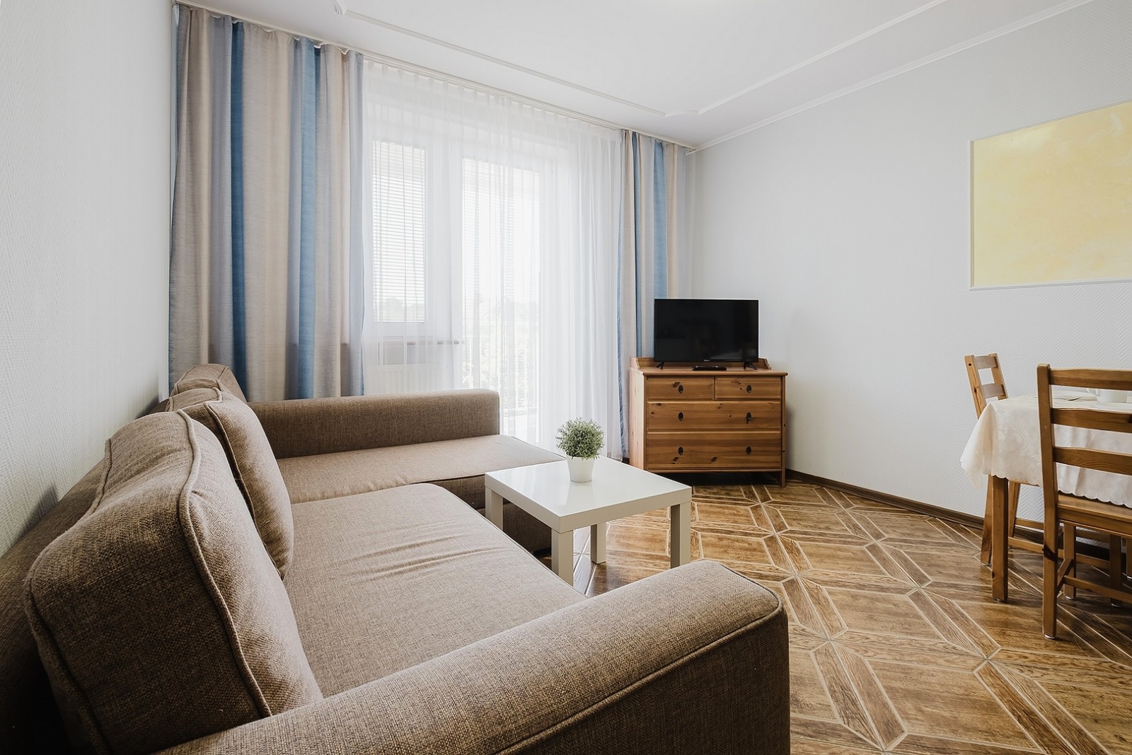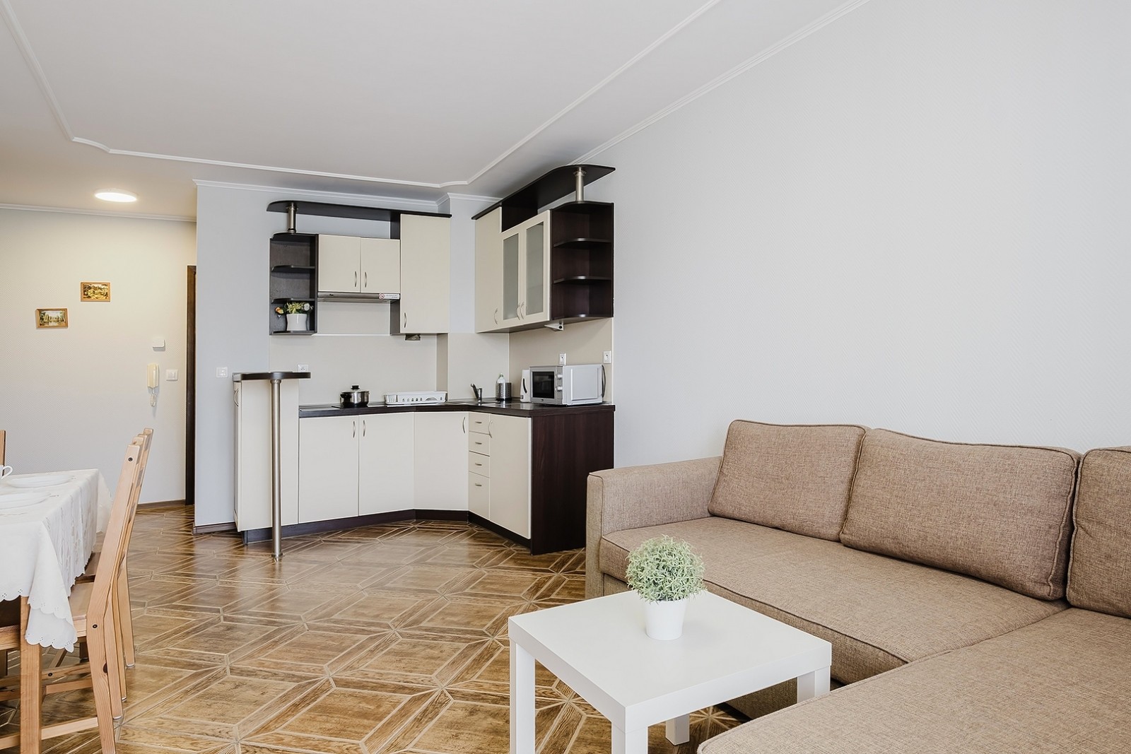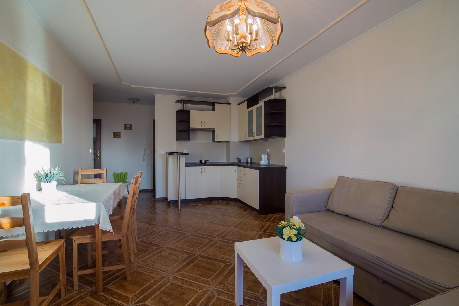 Apartament dwupokojowy Eryk 5 zlokalizowany w obiekcie U na I piętrze. W skład apartamentu wchodzi łazienka z kabiną prysznicową, dużym aneksem kuchennym wyposażonym w niezbędne naczynia kuchenne, lodówko - zamrażarkę, płytą grzewczą - elektryczną , mikrofalówka, duży stół oraz kanapo - sofę,wersalkę młodzieżówkę, mały pokój tapczanik x3, odbiornik TV 32" LED z cyfrową naziemną telewizją, balkon z stoliczkiem i krzesełkami. Do apartamentu przydzielone jest 1 bezpłatne miejsce parkingowe. Wi-Fi