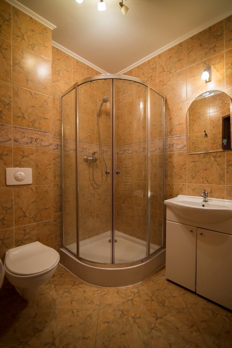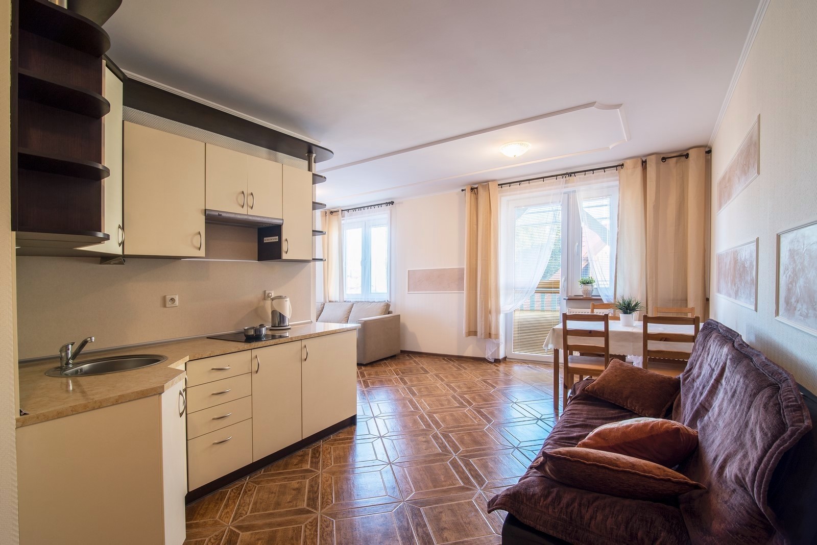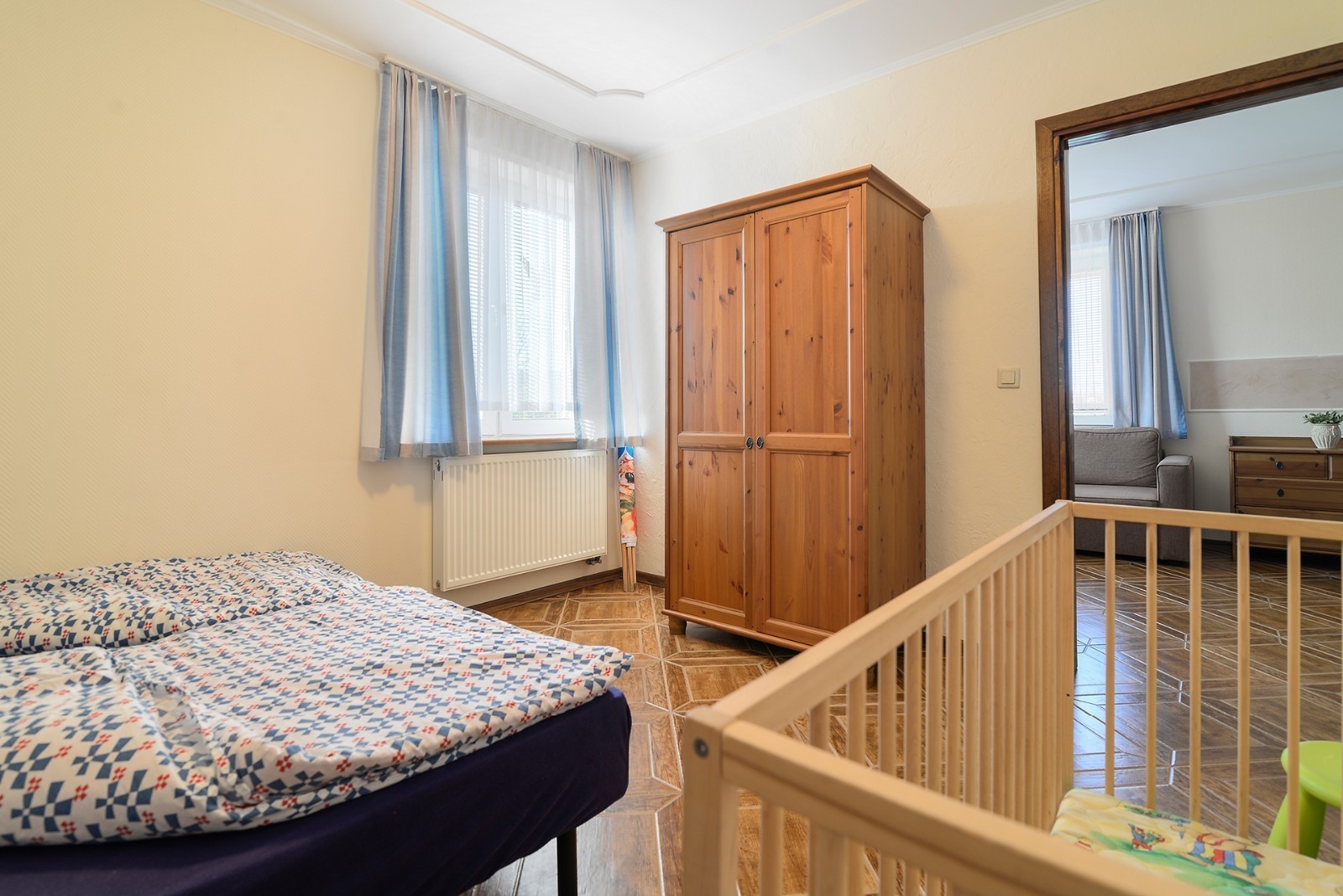 'Eryk 7' is a two-room apartment located in Building U on the 1st floor. The apartment consists of a bathroom with a shower, a living room with a large kitchen area equipped with the necessary dishes and utensils, a fridge, an electric hob, a microwave, a large table and a sofa bed, a small foldable sleeper sofa, a LED TV set with digital terrestrial television, a small bedroom with two single beds, a balcony with a small table and chairs with a view of the Vistula Lagoon, and free Wi-Fi access. The apartment has an allocated parking space.